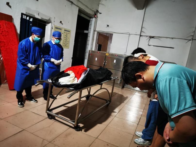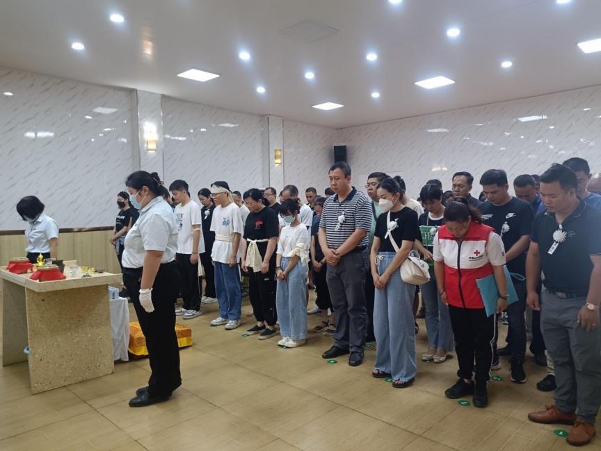 ▲紅十字會和醫(yī)護人員向何繼東遺體鞠躬