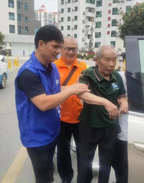 ▲發(fā)病前三天(6月15日)何繼東(身穿橙色義工)到醫(yī)院慰問東蘭的抗戰(zhàn)老兵