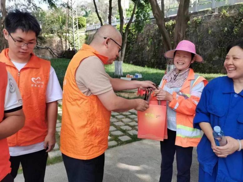 6月14日,何繼東帶領志愿者開展慰問城市園林工人活動;