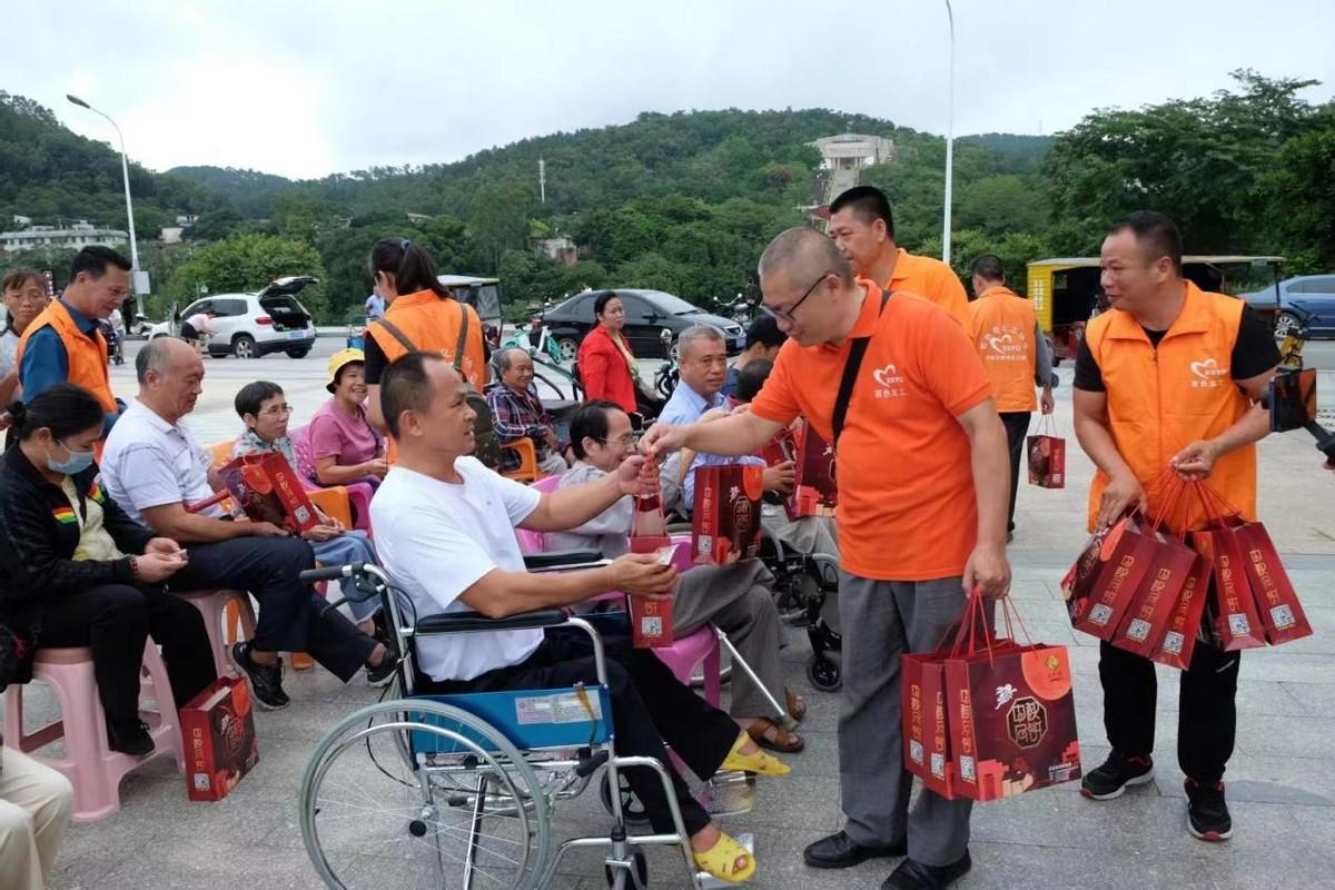 ▲壹方基金、百色市義工協(xié)會、陽光助學愛心協(xié)會,百色市草根公益協(xié)會、中桂摩托車等團隊志愿者們送別何繼東