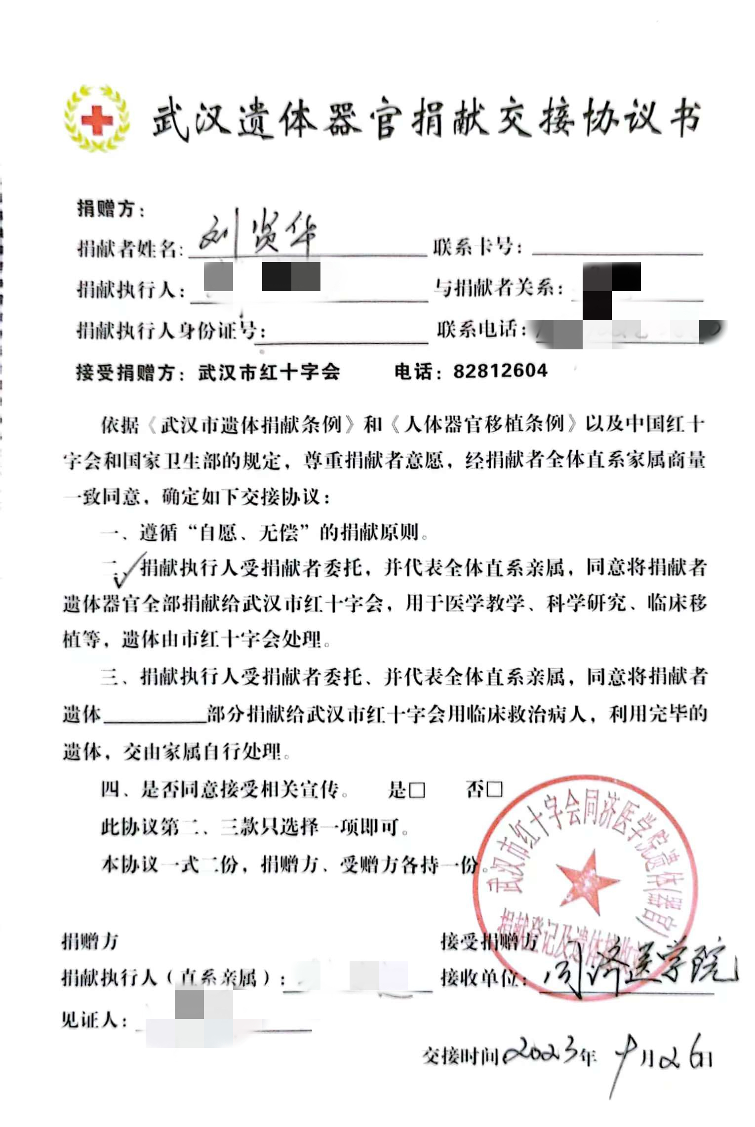 她見慣了生死離別,如今她只想離世后能幫助更多需要幫助的人。2023年9月26日20時(shí)20分,58歲的劉賢華因病離世,按照其生前遺愿,家屬捐獻(xiàn)了她的眼角膜和遺體,為他人留下光明,為醫(yī)學(xué)研究做出貢獻(xiàn)。