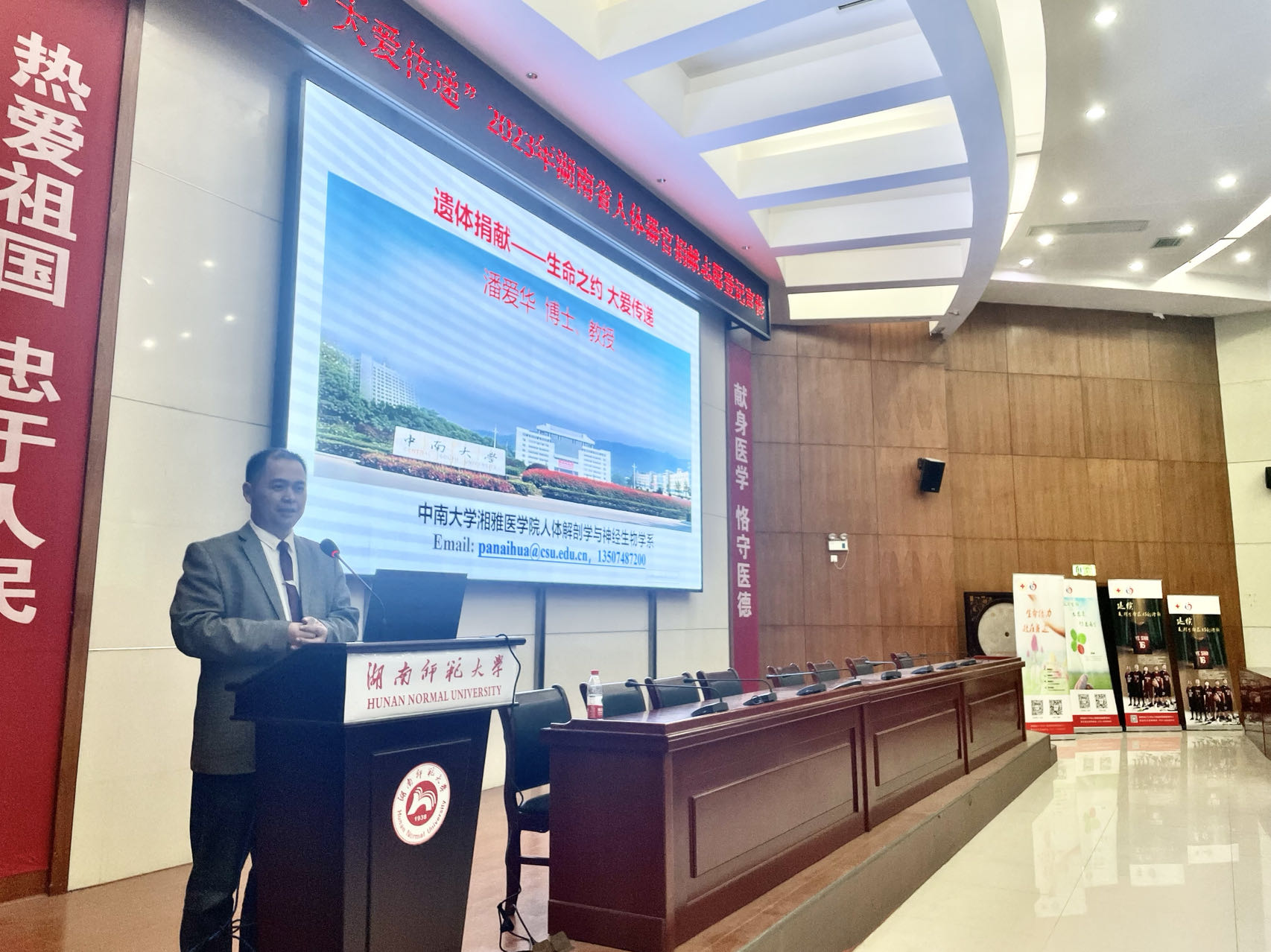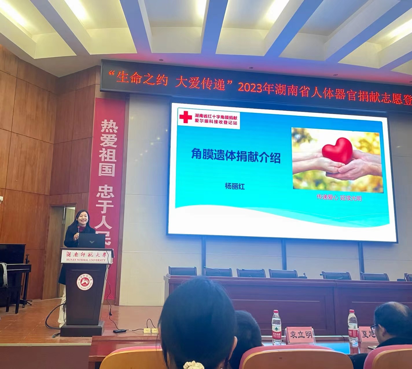 為進(jìn)一步推進(jìn)人體器官捐獻(xiàn)工作,弘揚(yáng)“人道、博愛、奉獻(xiàn)”的紅十字精神,普及器官捐獻(xiàn)知識(shí),更好地守護(hù)人們的生命和健康,2023年12月7日,湖南省人體器官捐獻(xiàn)管理中心聯(lián)合中南大學(xué)湘雅醫(yī)學(xué)院、長(zhǎng)沙愛爾眼科醫(yī)院專家教授,在湖南師范大學(xué)醫(yī)學(xué)院舉辦“生命之約、大愛傳遞”專題講座及器官捐獻(xiàn)報(bào)名登記宣傳活動(dòng)。